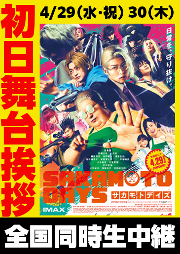 4月29日(水祝)、30日(木)、『SAKAMOTO DAYS』の舞台挨拶を生中継いたします。主演の目黒蓮さんほかが登壇いたします!