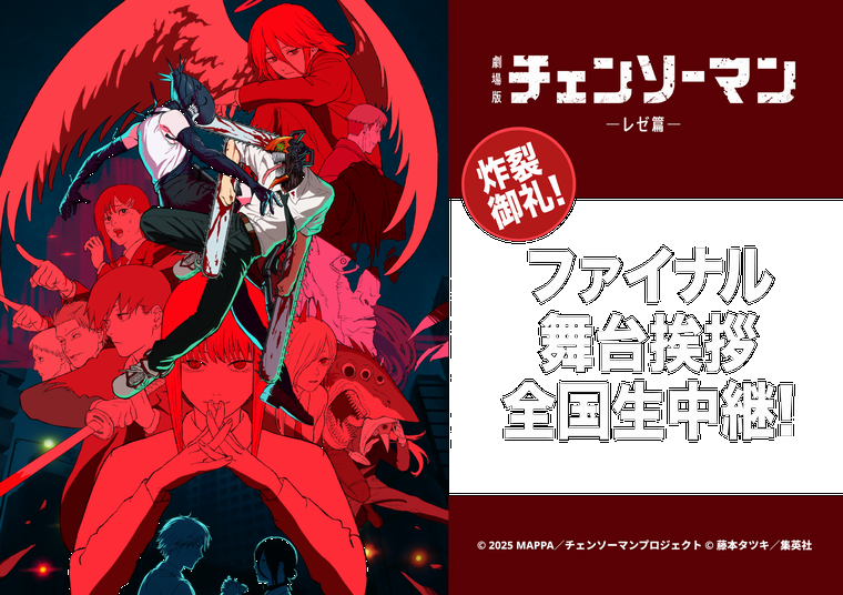 3/21(土)、劇場版『チェンソーマン レゼ篇』炸裂御礼!ファイナル舞台挨拶を生中継いたします。